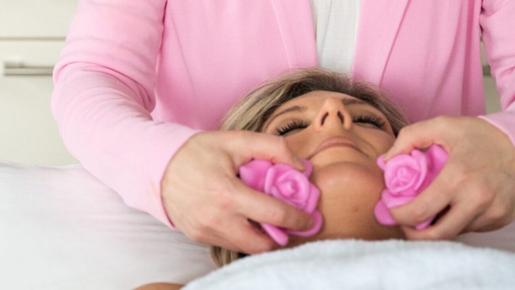 Die Behandlung besteht aus 3 Komponenten: • einem kosmetischen Teil • der Gesichtsmassage • einer Meditation Dabei kommen die Love Rose Massagerosen zum Einsatz. Diese sind die ersten Massagerosen für das Gesicht und damit eine absolute Weltneuheit! Die ergonomische Form der Rosen ist perfekt auf das Gesicht angepasst. Mit der entwickelten Lymphdrainage Massagetechnik, werden überschüssige Wassereinlagerungen aus dem Gesicht entfernt und die Durchblutung der Haut gefördert. Alle Zellen werden bis in die Tiefe mit Sauerstoff versorgt, die Konturen gestrafft und Fältchen sichtbar aufgepolstert.